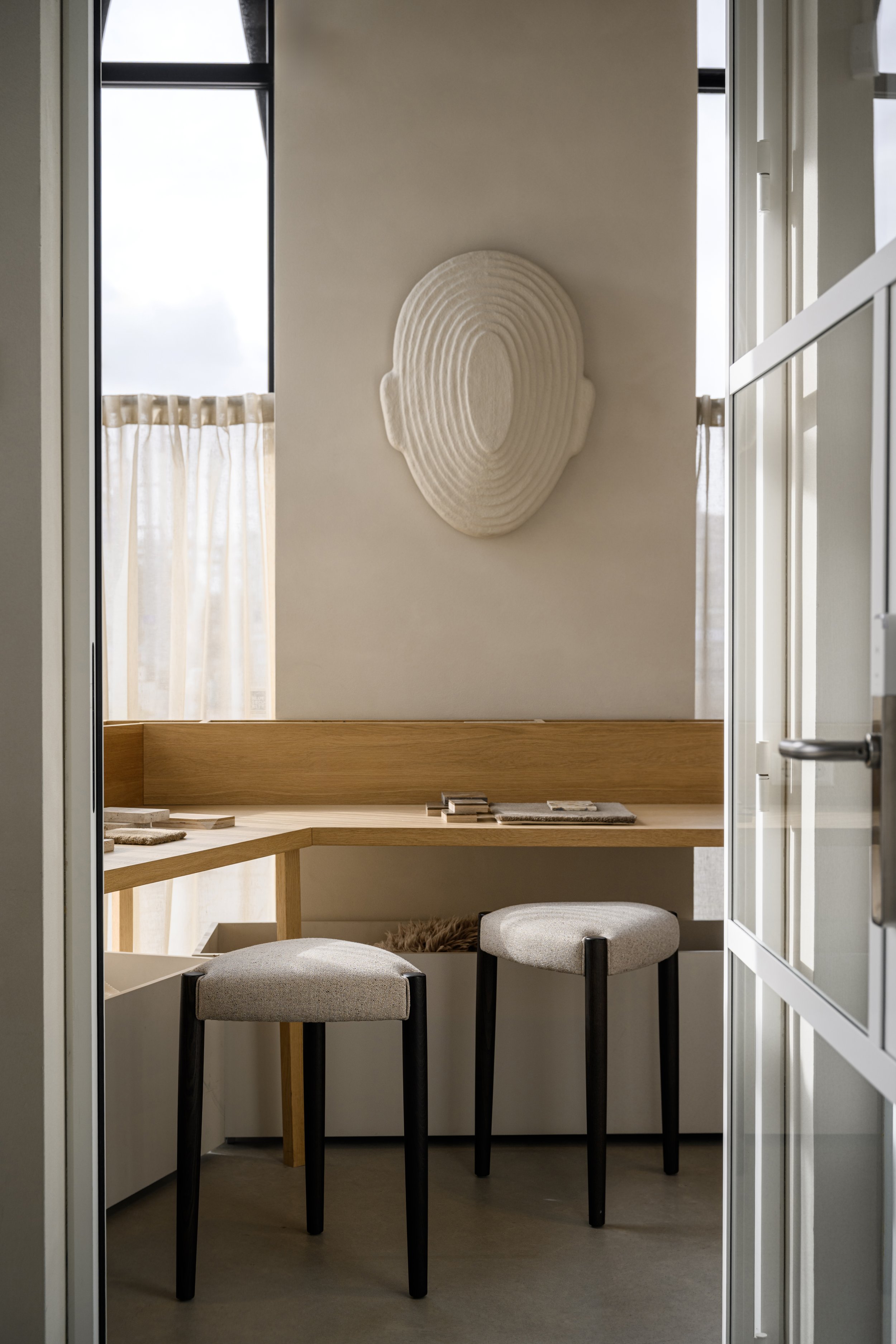 In haar recente werk experimenteert zij onder meer met vilt en wol, bewerkt met een eigen techniek. Deze materialen brengen warmte, structuur en diepte in haar werk. Wat blijft, is haar voorkeur voor ingetogen kleuren en oppervlakken met een subtiele patina, die haar werk een tijdloze uitstraling geven.
